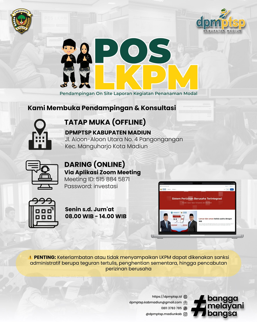 PENGAJUAN IZIN SECARA ONLINE PKKPR, Izin Reklame dan Izin Makam sudah dapat diajukan secara online dengan memilih (klik) icon SiWALI pada website ini. Atas perhatian Anda kami ucapkan terima kasih. ![]() Lokasi: Pasar Hewan Dolopo Tanggal 4 Februari 2026 Mulai pukul 07.00 WIB ![]() ![]() ![]() ![]() ![]() ![]() ![]() ![]() ![]() ![]() ![]() Kami ingin mendengar suara Anda! Silakan berpartisipasi dalam survey kepuasan masyarakat kami dan bantu kami meningkatkan kualitas layanan. Silahkan scan barcode untuk link pengisian survey. Atas perhatian Anda kami ucapkan terima kasih. ![]() ![]() ![]() ![]() ![]() ![]() ![]() ![]() ![]() ![]() |